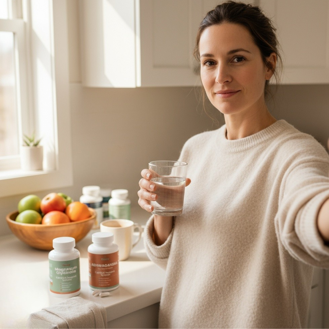 Ashwagandha supports your stress adaptation system. Magnesium glycinate activates your nervous system's restoration pathway.