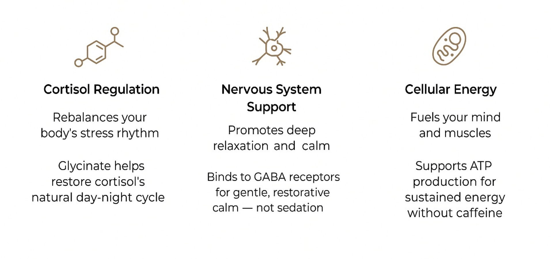 Our Magnesium Glycinate is chosen for its superior bioavailability and its proven ability to calm the nervous system, without discomfort or fillers.