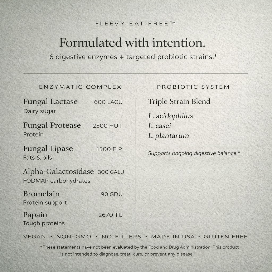 The 6-enzyme + probiotic capsule that lets you eat dairy, gluten, and everything in between — without the bloat, the pain, or the bathroom sprint.